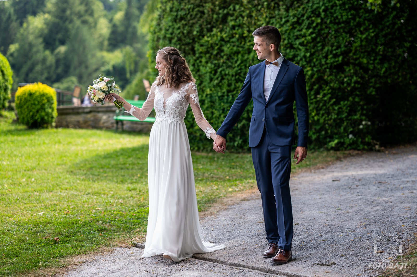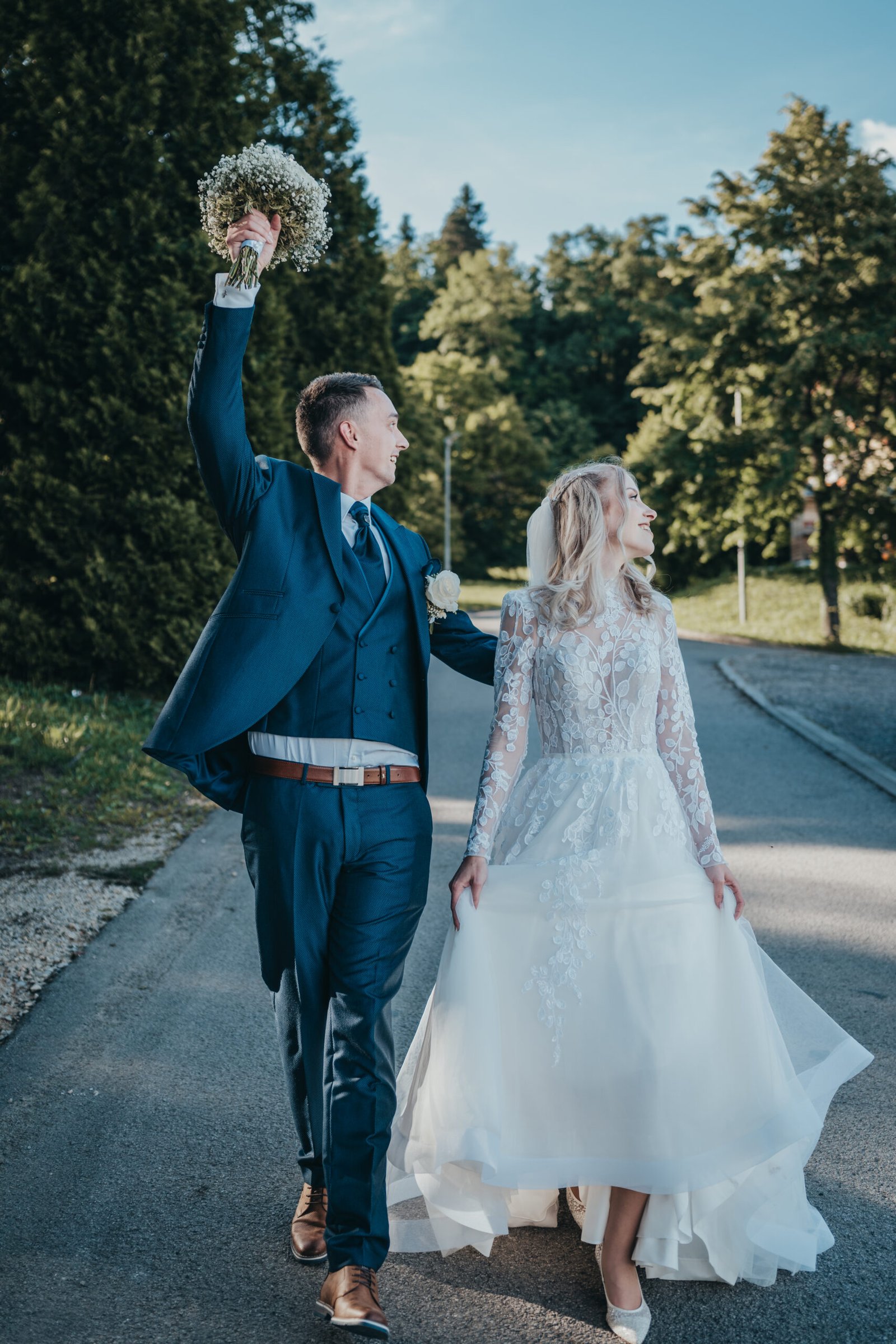 Verjamem, da je zaupanje ključ do pristnih fotografij, zato vsako poročno sodelovanje začnemo s prijetnim predporočnim srečanjem, kjer se v miru spoznamo, poklepetamo ob kavi in izpolnimo predporočni vprašalnik. Le ta je skrbno sestavljen na podlagi mojih preteklih izkušenj in nam bo v veliko pomoč pri sestavljanju časovnice našega sodelovanja. Vprašanja v njem so naše ključne oporne točke za pogovor. Po sestanku naredimo tudi nekaj sproščenih fotografij, da razbijemo morebitno začetno tremo. Če imata v planu poskusno poročno frizuro ali ličenje vama predlagam, da termin uskladimo s sestankom. Tako se bosta počutila še bolj posebna in privlačna. Ko bosta prvič zaplesala, se objela, poljubila in se iz srca nasmejala pred fotoaparatom, smo si naredili veliko uslugo in spisali zlato popotnico za vajin poročni dan. Takrat bosta sproščena in pripravljena, ker bosta vedela, koga pričakovati ter razumela način mojega dela. Ostala bosta samo vidva, z ljubeznijo in čudovito enotnostjo, ki bo opazna na prav vsaki fotografiji.
